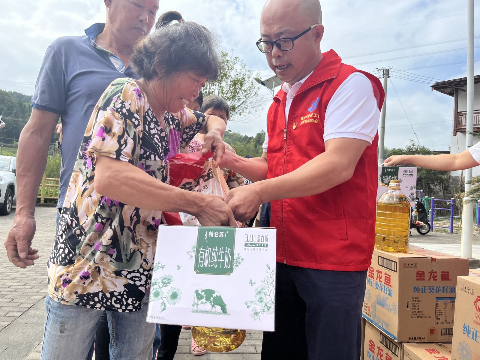 福州市建設工程管理有限公司董事長、協會會長盧曉文帶領各會員單位前往壽山鄉江南竹村民委員會,慰問60歲以上老人,致以節日問候并送上了大米、食用油、牛奶等慰問物品。